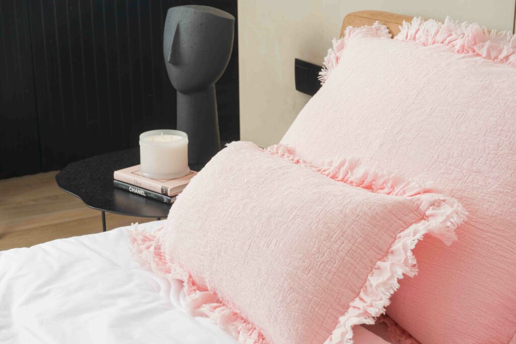 A almofada SALVA em tons rosa é a almofada ideal para um toque de cor na sua cama. Se a combinar com a manta tapa-pés SALVA também rosa obtém um resultado incrível.